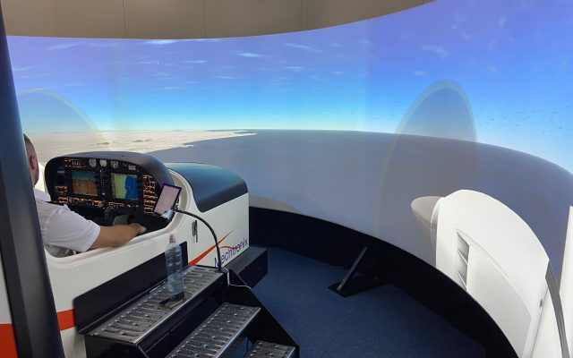 It has a fully equipped Garmin G1000 cockpit and is designed to mimic the DA40-NG and DA42-NG in every way.